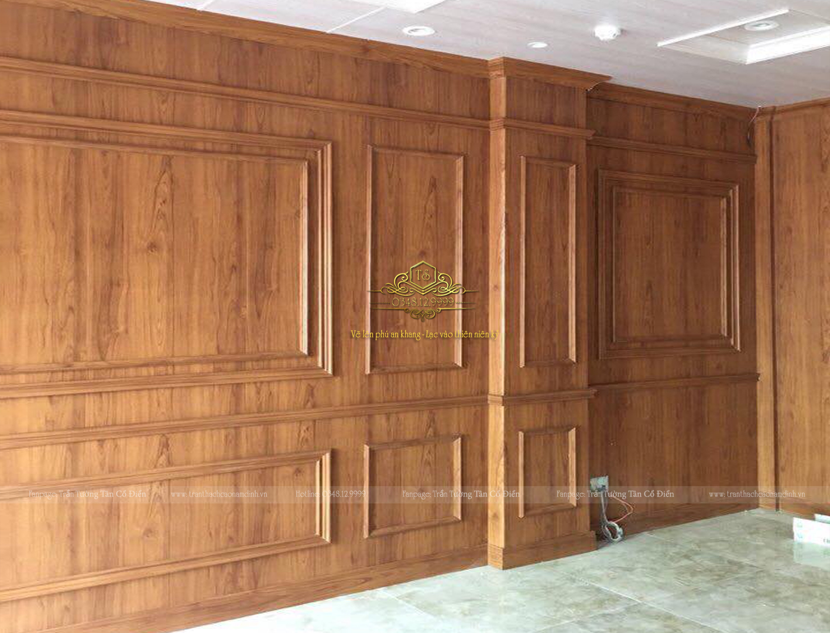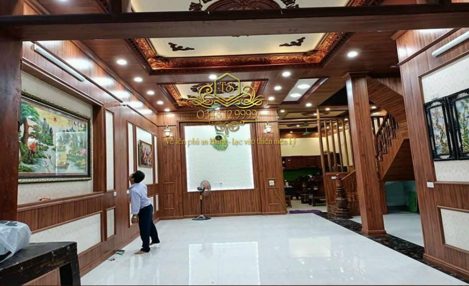 Thi công trọn gói Trần tường nhựa vân gỗ phòng khách