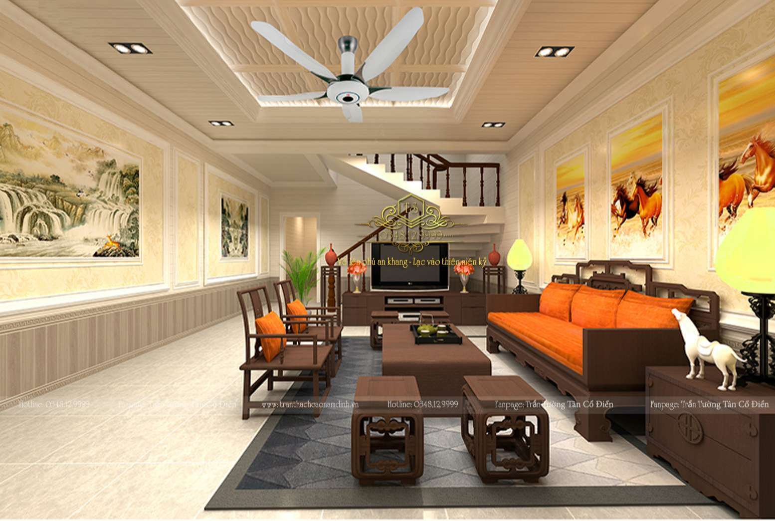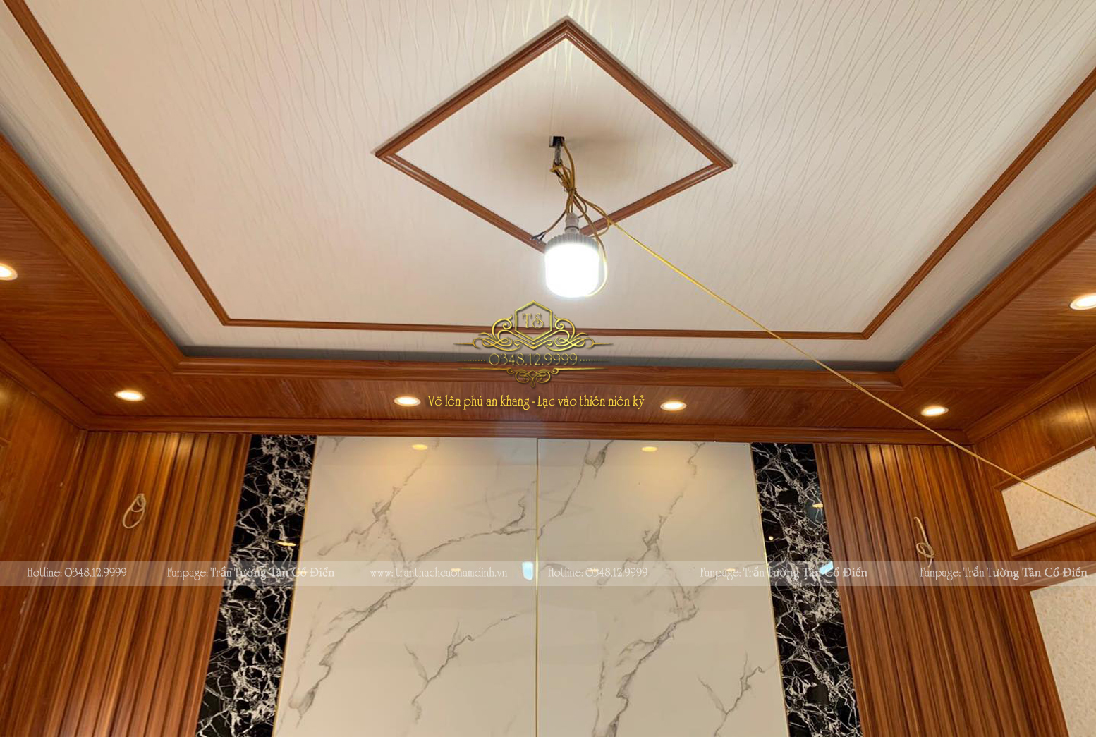 Hạng mục thi công: Trần nhựa, ốp tường nhựa, phào chỉ PU, giấy dán tường